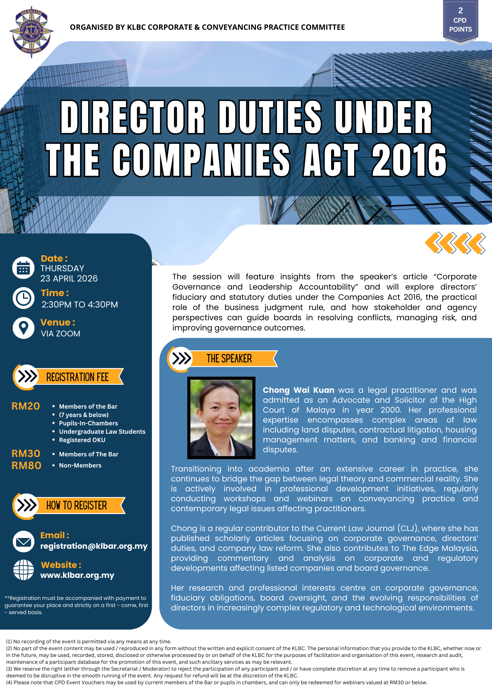 • CPD points will be allocated based on the attendance log provided by Zoom.