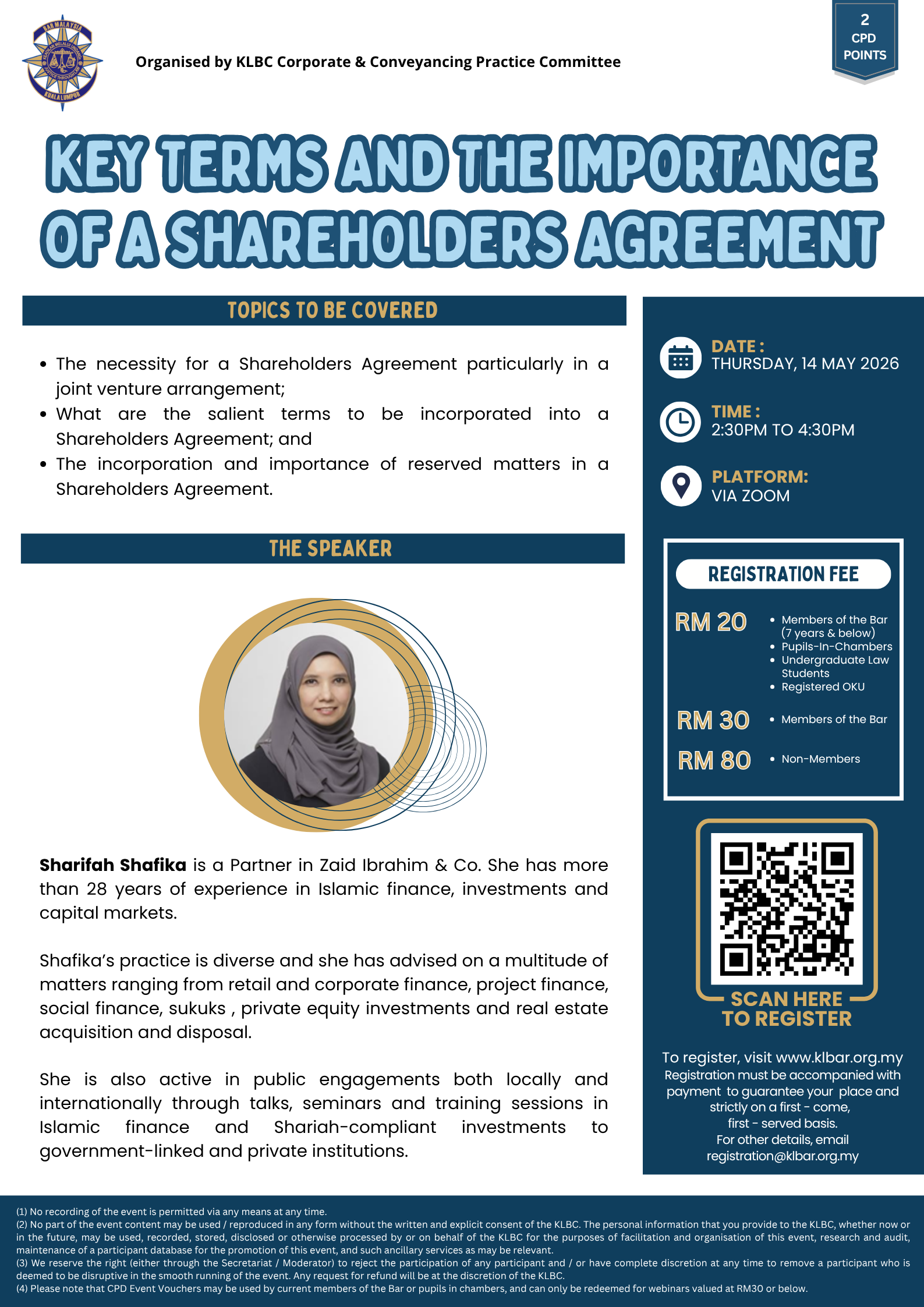 • CPD points will be allocated based on the attendance log provided by Zoom.