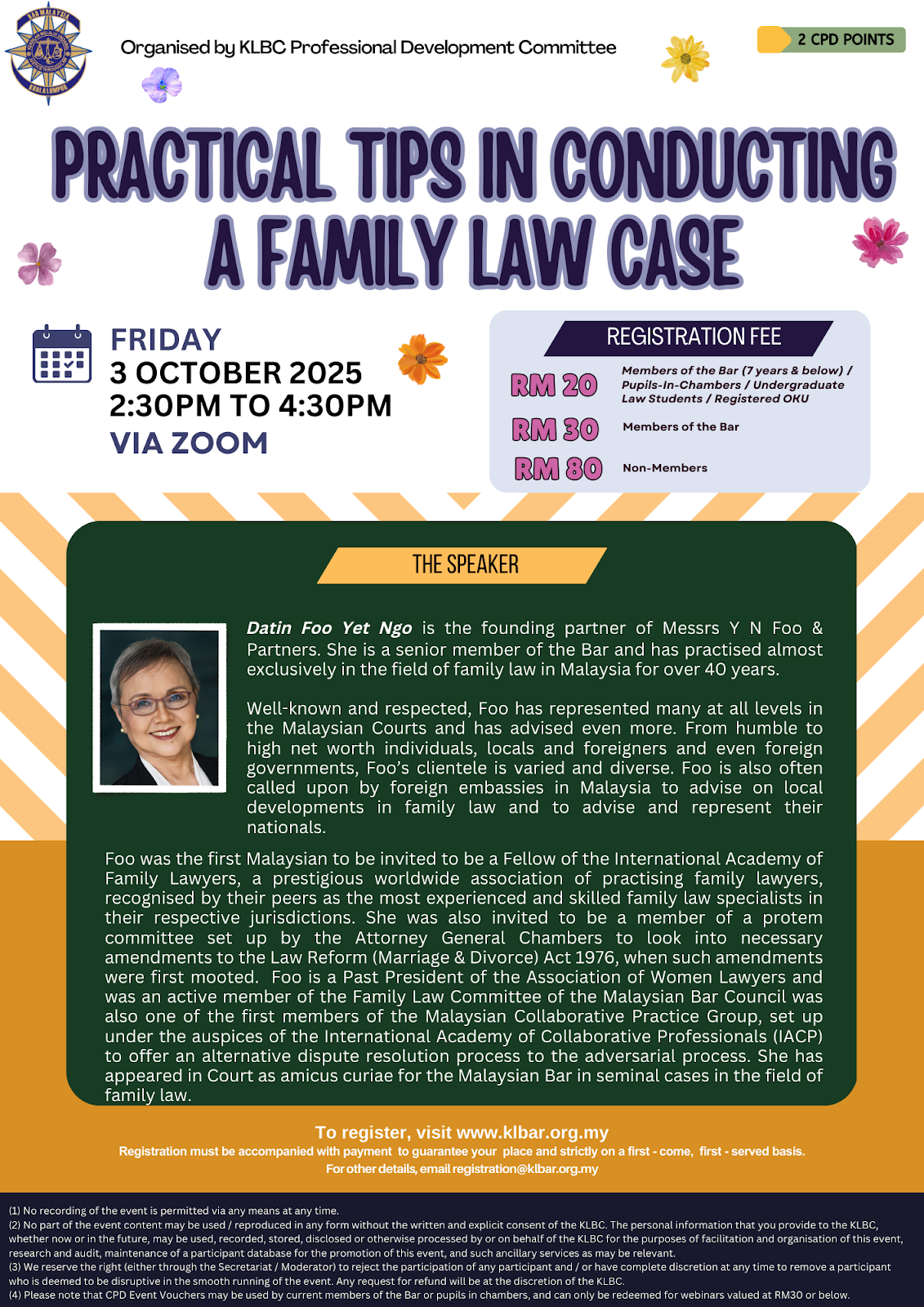 • CPD points will be allocated based on the attendance log provided by Zoom.