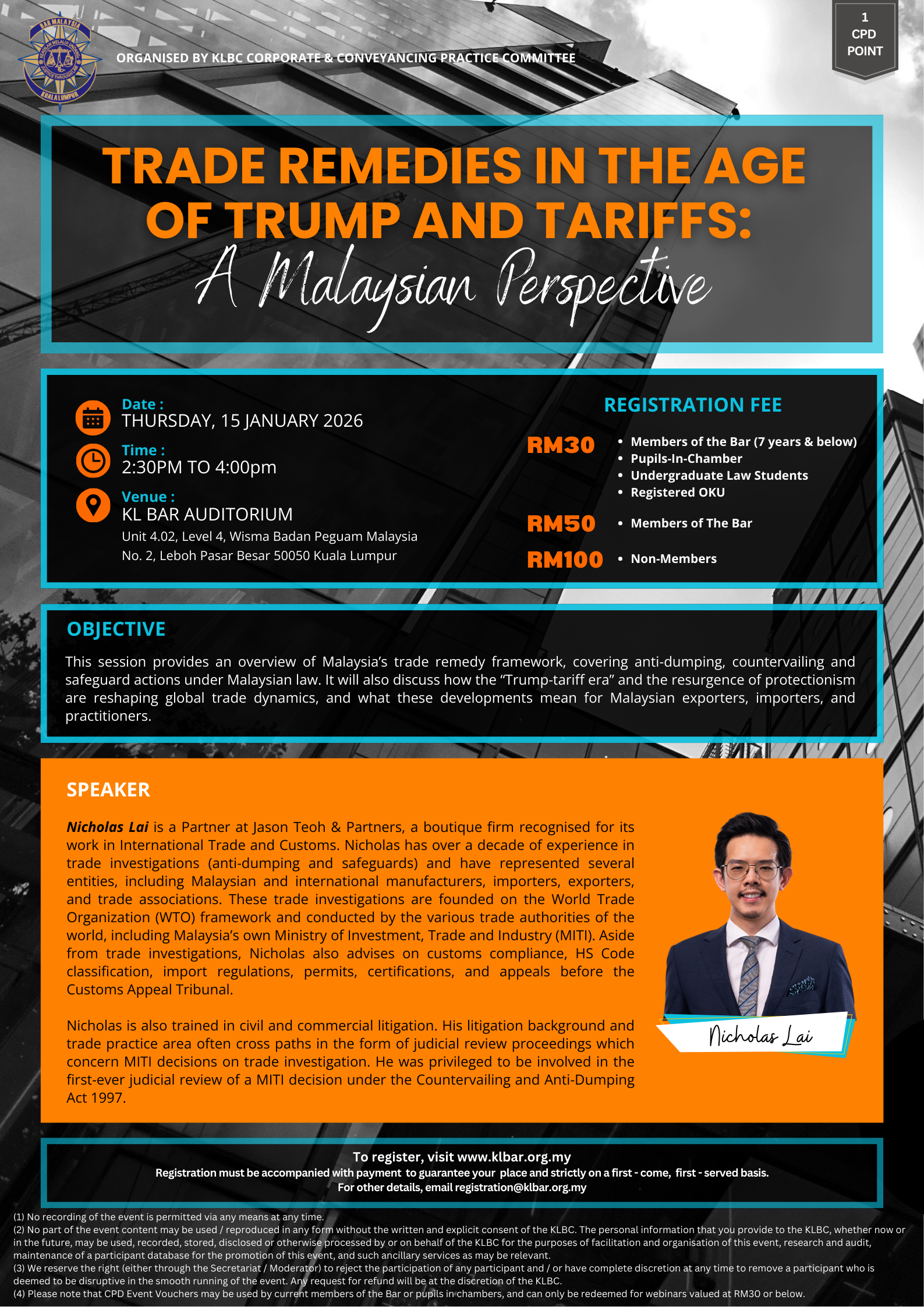 • Latecomers (15 Minutes after the start time) and those who leave early will not be entitled to receive the CPD Points.