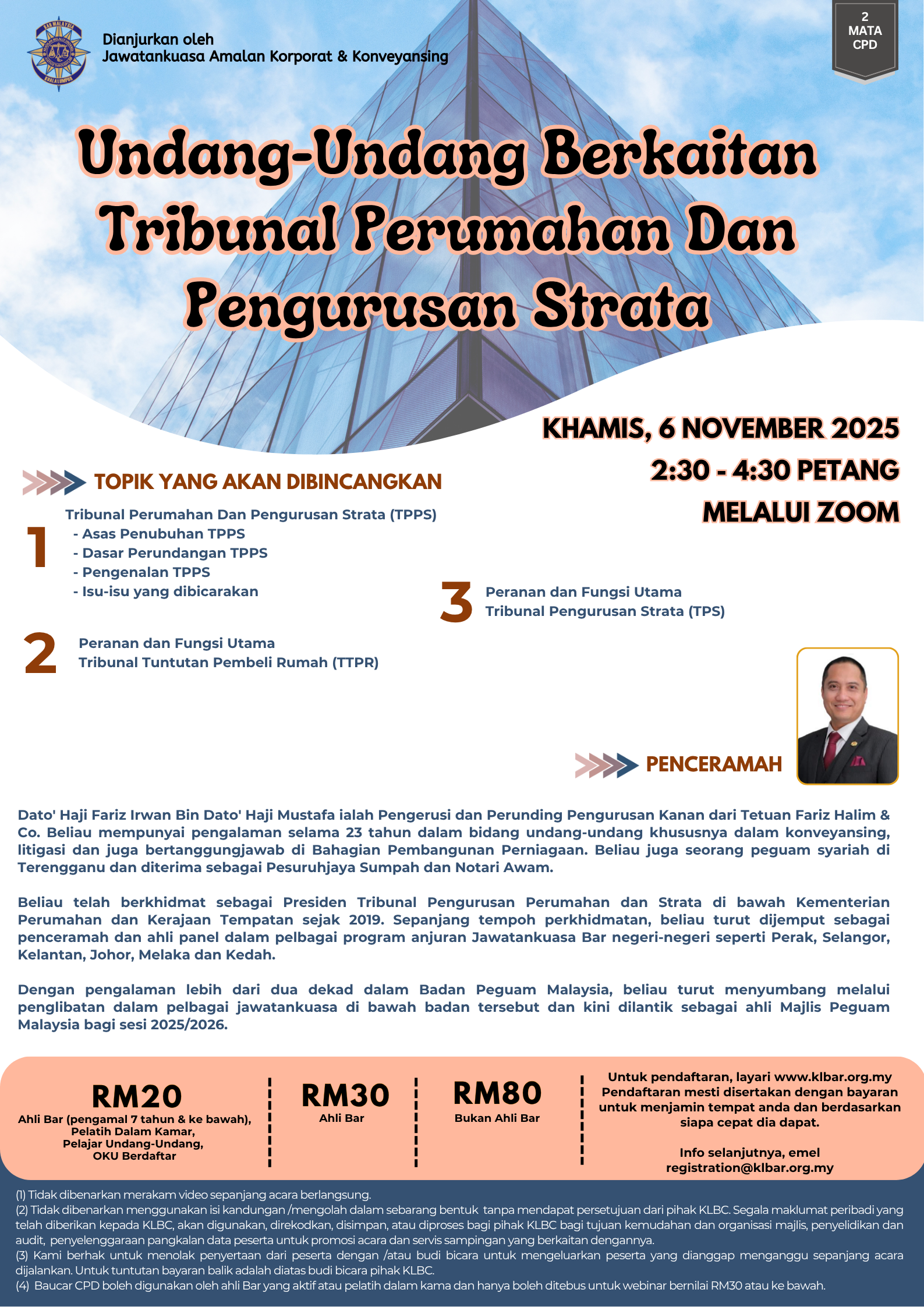• Pautan Zoom Webinar untuk acara akan dihantar pada tarikh acara selewat-lewatnya pada jam 12 tengahari.