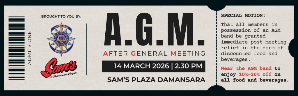 Please be reminded to attend the Malaysian Bar AGM this Saturday, 14 March 2026. Click here for the Agenda. We strongly encourage all members of the Kuala Lumpur Bar to show up and participate in the day’s proceedings.